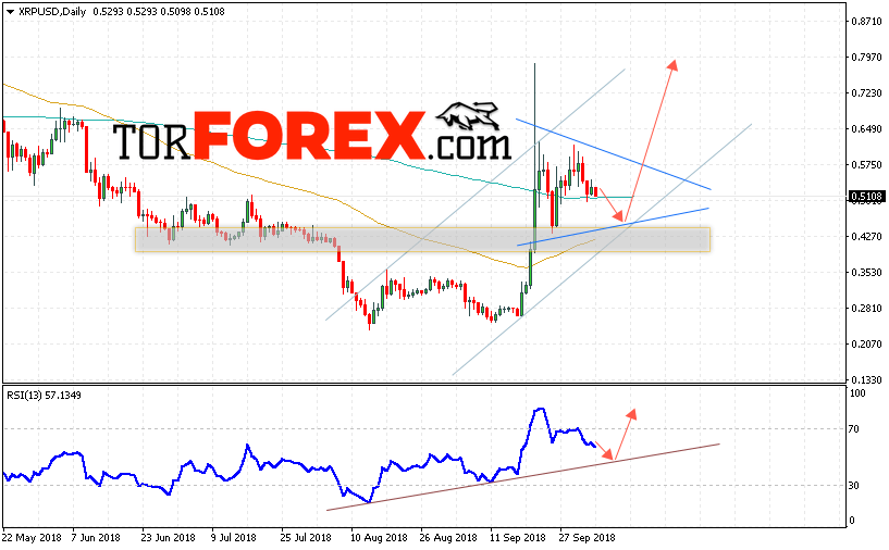Таким образом, Криптовалюта Ripple прогноз на 8 — 12 октября 2018 предполагает попытку теста уровня поддержки вблизи области 0.4350, откуда стоит ожидать продолжения роста котировок с потенциальной целью на уровне 0.8050, дополнительным сигналом в пользу роста Ripple выступит тест линии тренда на индикаторе относительной силы, отменой роста криптовалюты выступит пробой области 0.3850, что укажет на продолжение падения.