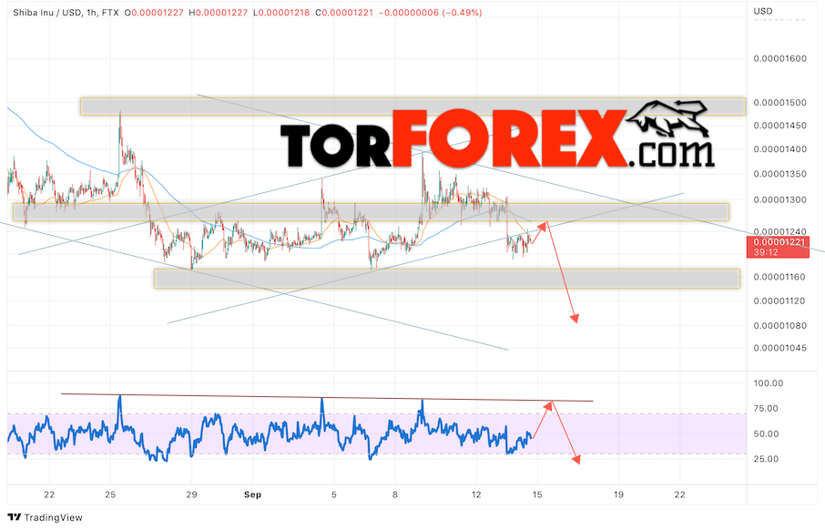 Таким образом, Shiba Inu прогноз курса на 15 сентября 2022 предполагает попытку развития коррекции монеты и тест области сопротивления вблизи уровня 0.00001245. Затем, продолжение падения в область ниже уровня 0.00001065. Дополнительным сигналом в пользу снижения SHIBA INU выступит тест линии тренда на индикаторе относительной силы (RSI). Отменой варианта падения станет сильный рост и пробой области 0.00001485. Это укажет на продолжение подъёму криптовалюты с целью выше уровня 0.00001835.