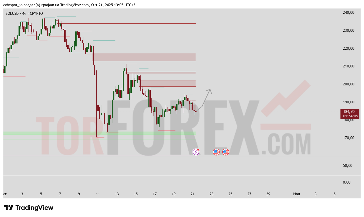 Критическая поддержка: 180-185 (зона FVG + EMA 100)