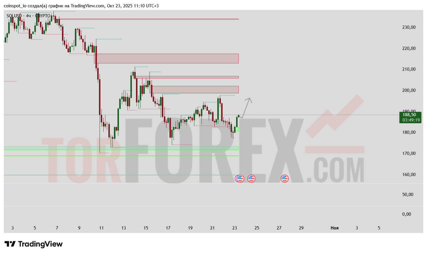 Критическая поддержка сформирована на уровне 180-185 (исторический уровень + FVG)