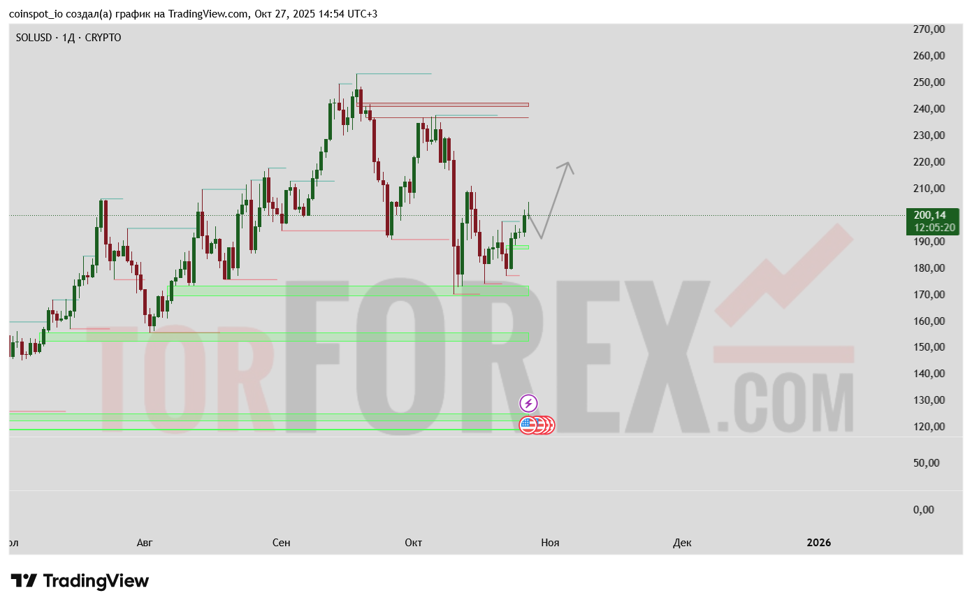 График показывает, что рынок формирует потенциальную точку равновесия перед следующим импульсным движением. Важнейшим уровнем является текущая цена вокруг 200,00–201,00 USD.