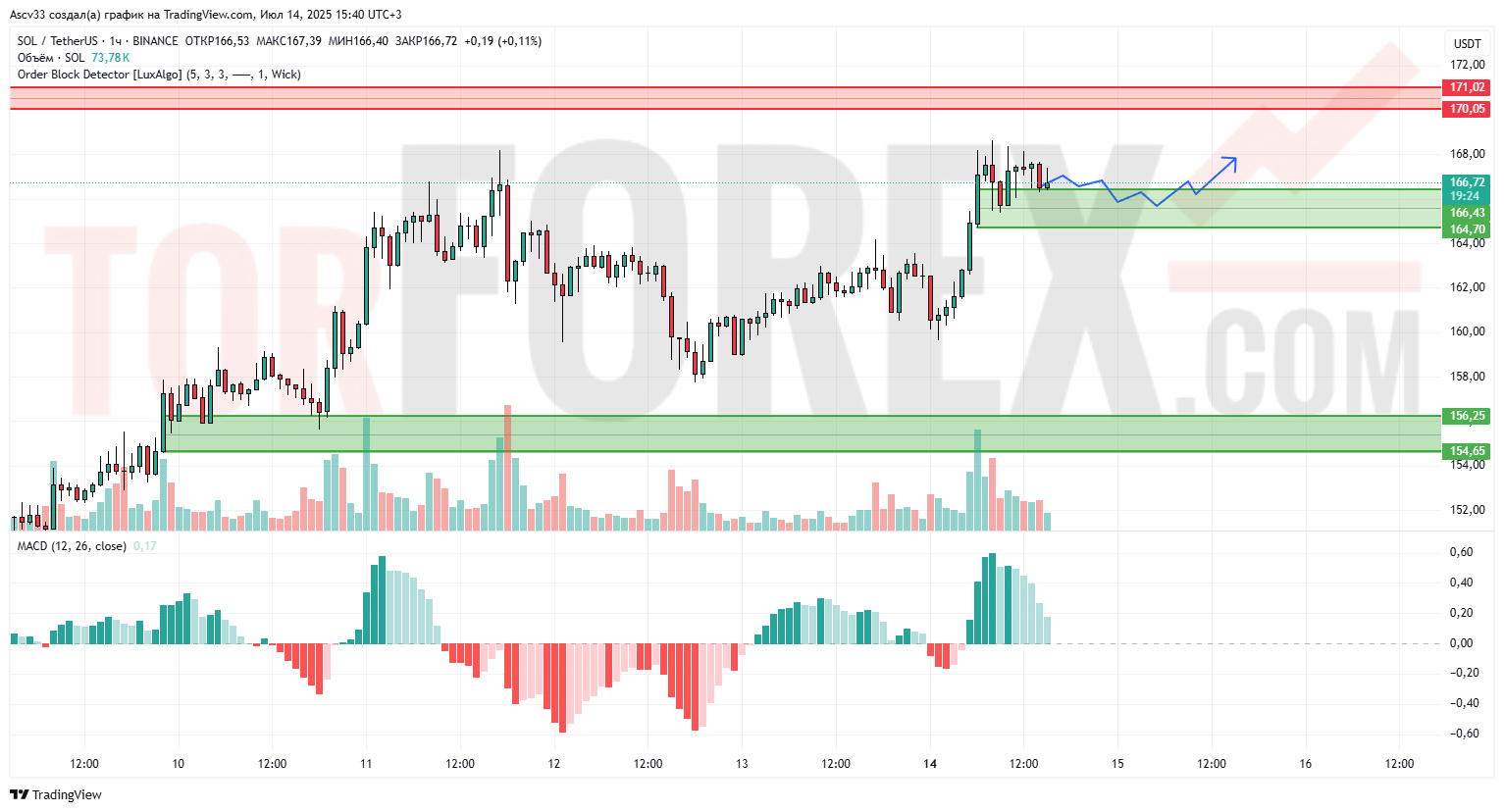 170,05–171,02 — важный уровень предложения, где ранее фиксировалась прибыль. Пробой и закрепление выше откроют путь к 175–180.