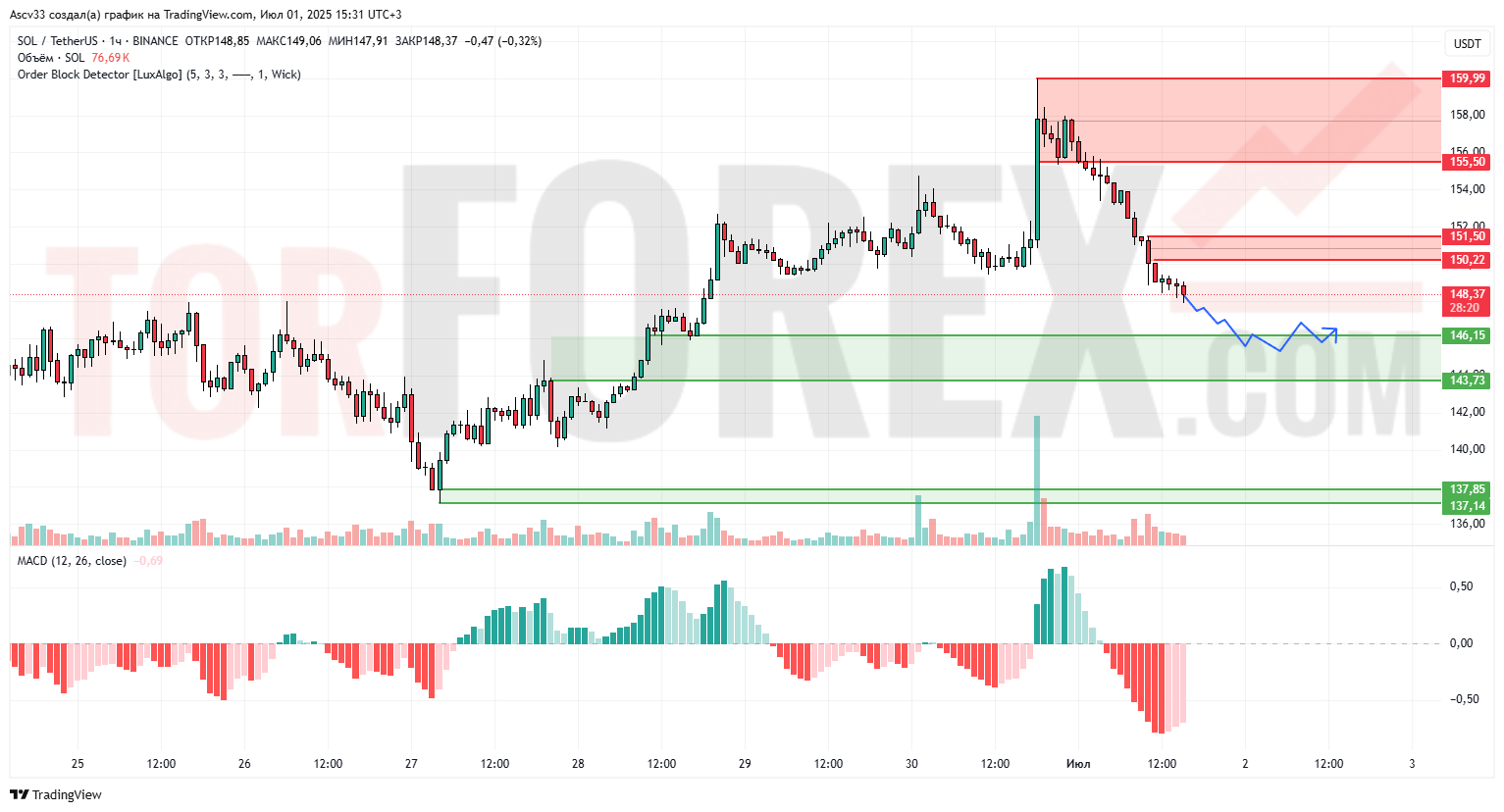 Прогноз Солана Доллар SOL/USD на 2 июля 2025