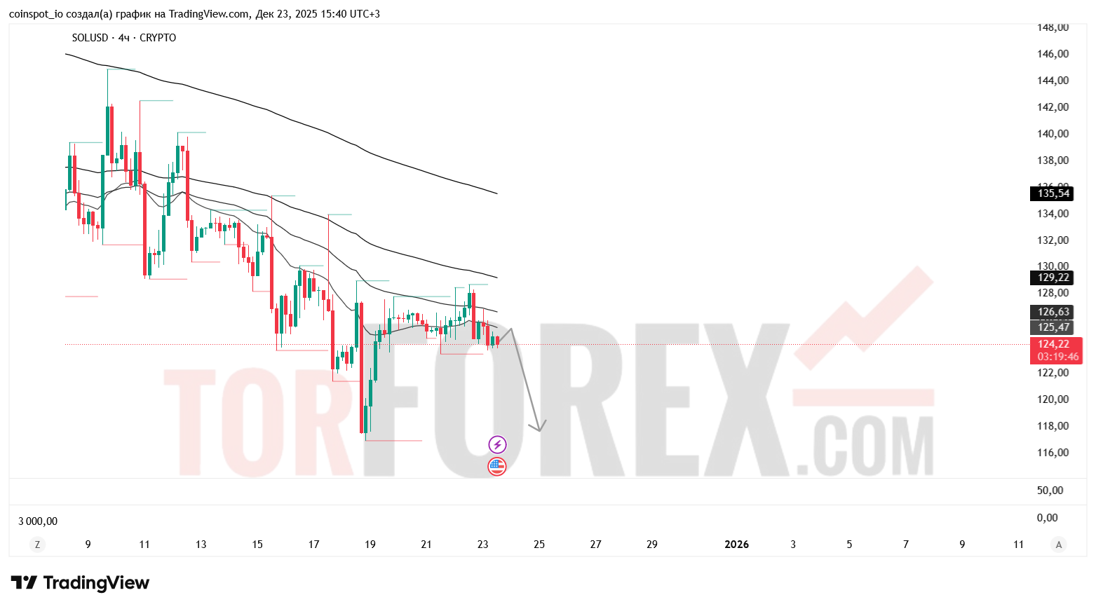 • Лонг при закреплении выше 126.00 USD, цели — 127.50 / 129.00 USD, стоп — ниже 124.50 USDsolusd-prognoz-24.12.2025