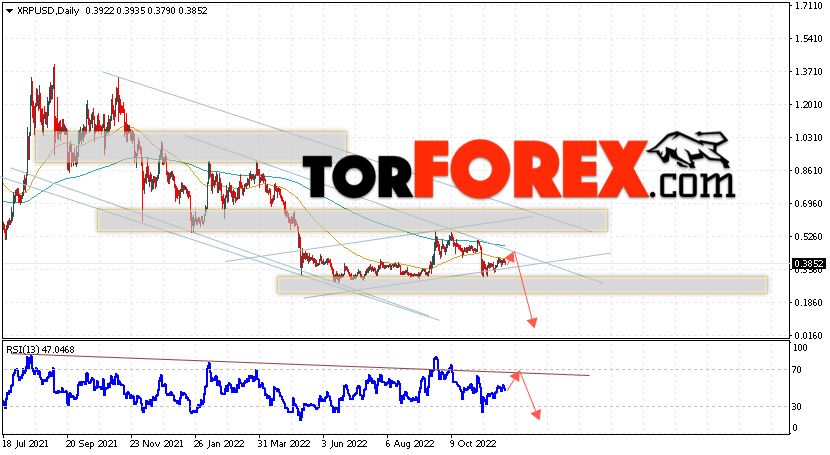 Дополнительным сигналом в пользу падения котировок XRP на текущей торговой неделе 5 — 9 декабря 2022 выступит тест линии сопротивления на индикаторе относительной силы. Вторым сигналом станет отскок от верхней границы нисходящего канала. Отменой варианта падения криптовалюты Ripple станет сильный рост цен и пробой области 0.5445. Это укажет на пробой области сопротивления и продолжение роста котировок XRP/USD с целью выше уровня 0.7005. Подтверждением падению криптовалюты выступит пробой области поддержки и закрытие котировок ниже области 0.3305.