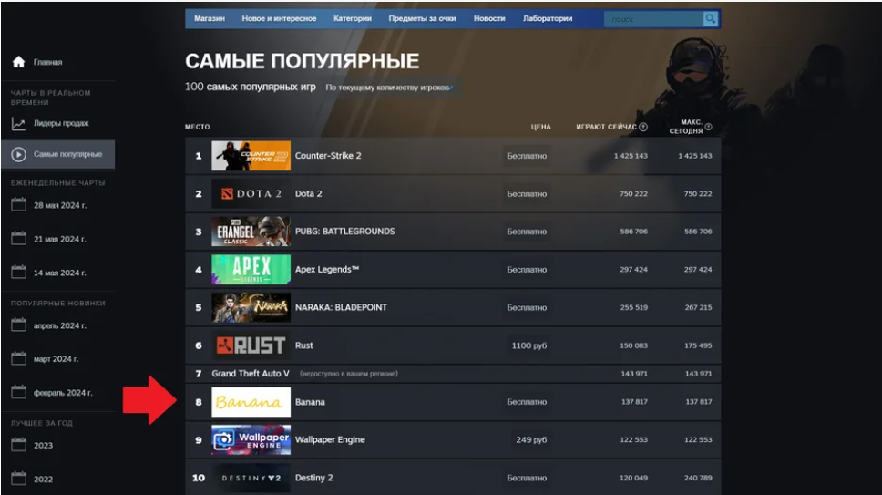 Как таковых отзывов о BANANA в сети практически нет. Есть рассуждения на тему “очередная тапалка, сколько можно”. Однако факты говорят сами за себя — в Steam кликер входит в топ 10 самых популярных игр, что говорит о доверии и интересе публики. Однозначно, скамом Banana не является.