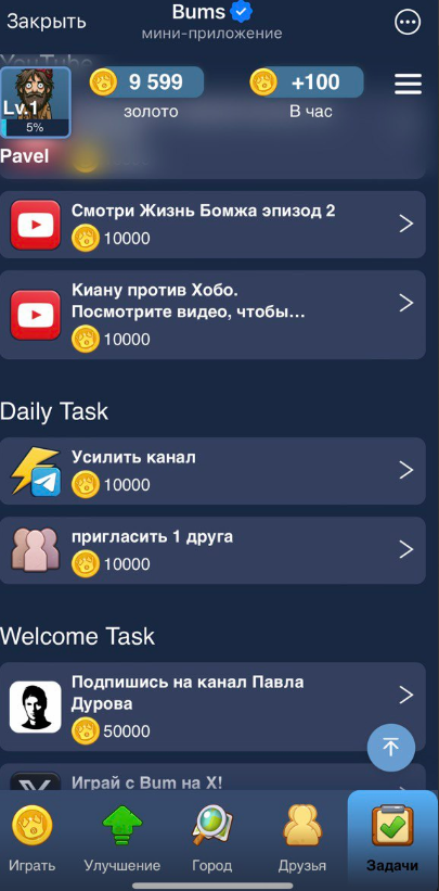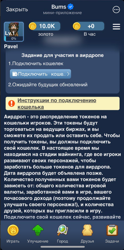 Тем не менее доверие к ТГ игре Bums повышенное. Потому что совсем уж откровенный скам команда Дурова бы точно не пропустила.