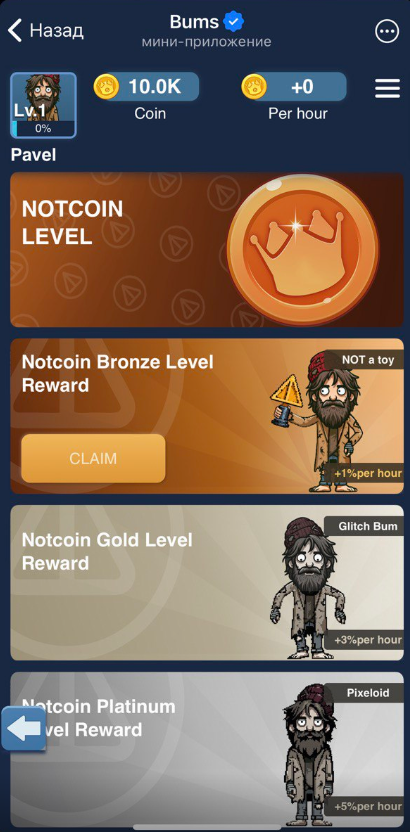 После такого у широкого круга общественности возникло желание пощупать крипто игру Bums в ТГ. Потому что если уж и играть во что-то, так это в то, что благословил лично создатель Телеграм. Однако не стоит сильно преувеличивать этот факт. Поскольку не всегда то, что мелькало в телеграмм-канале Du Rove, становилось мегауспешным. Вспомнить, к примеру, тот же TapSwap, который все никак не может дойти до фазы листинга. К тому же доподлинно неизвестно, чья тапалка Bums.