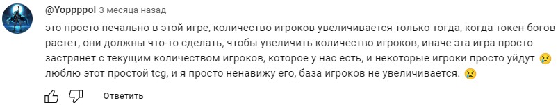 На сторонних сайтах много отзывов о проекте, у игроков к нему много претензий. Жалуются, что Gods Unchained теряет пользовательскую базу и играть скоро будет не с кем.
