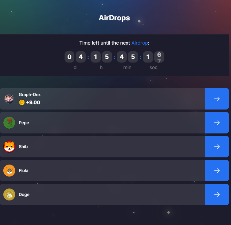 Graph dex привлекает анонсами airdrop. Раздачи монет начались в июле 2024 года. Сначала анонсировали популярные мемкоины, вроде Dogs. Graphdex провел Airdrop, результаты выложили на канале, но никто не показал скрины кошельков. Возникают вопросы о правдивости подобных раздач.