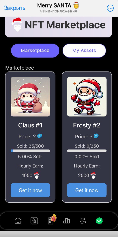 Здесь можно покупать и продавать NFT c Сантой.