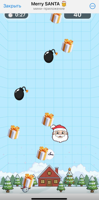 Затем в течение 30 секунд тапаем по коробкам и голове Санты, избегая нажатия на бомбы, которые отнимают заработанные очки.