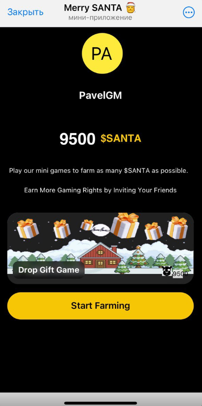 Если прокрутить главный экран вниз, то там встретится еще два интересных объекта. Первый – мини-игра наподобие ловли снежинок в Blum или помидор в Tomato. Чтобы начать играть, нажимаем Play – Start Farming.