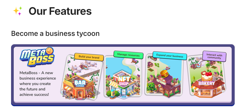 Metabossio — game-кликер в Telegram, которая сделана для того, чтобы игроки якобы зарабатывали там токены Mtb тапанием на экран. Суть проекта аключается в том, чтобы зарабатывать внутриигровые монетки, а позже, после airdrop и листинга токена, вывести их в реальные деньги.