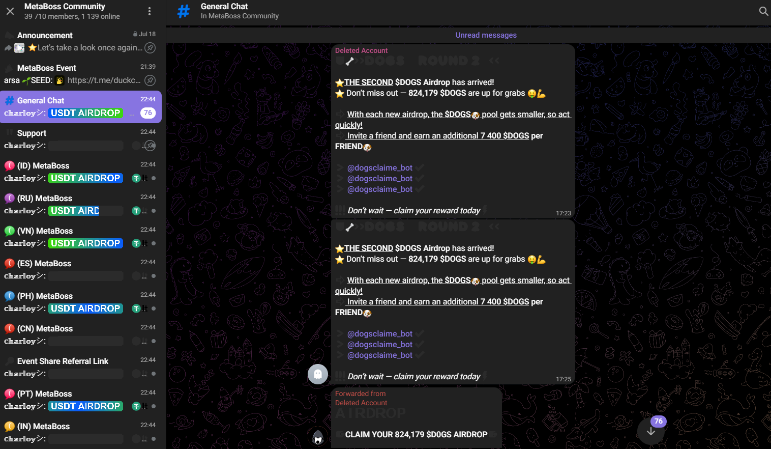У проекта есть чат, где разные аккаунты просто рекламируют новые скам-проекты и не общаются между собой.