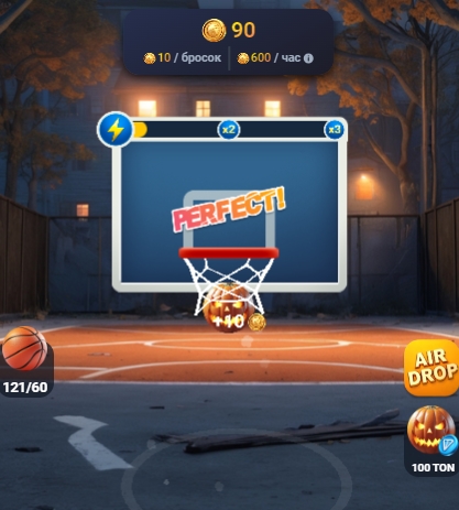 Открыв бот piggybankgamechannel и запустив игру, пользователь должен забрасывать мяч в корзину. Индикатор в верхней части экрана показывает, что стартовый майнинг составляет 600 игровых монет в час и 10 монет за бросок. Нажав на левую клавишу мыши или потянув мяч на экране смартфона и отпустив, пользователь сможет забрасывать его в корзину.