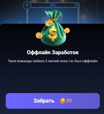 Есть пассивный заработок – игрок получает уведомления, что команда забила мячи, которые конвертируются в монеты. За один заброшенный мяч дают 10 игровых монет.
