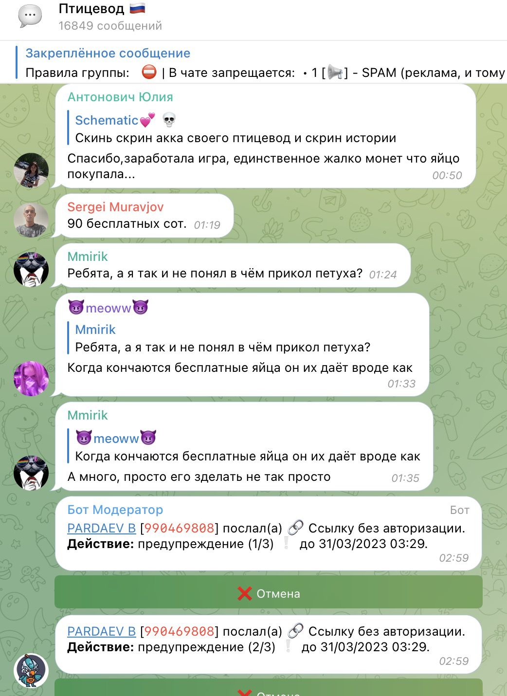 Сообщество игры поддерживается через активный чат в телеграм: https://t. me/pticevod_official/729868.