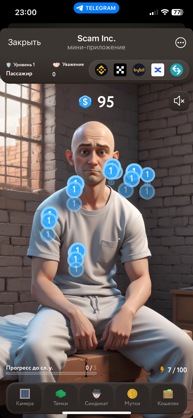 Scam Inc – тапалка в Telegram, в которой нужно продвигаться по виртуальной тюремной иерархии. Проект был анонсирован в первой половине августа 2024-го года. Игра представляет собой клон Hamster Kombat, у которого изменили дизайн.