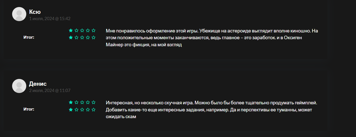 В сети есть негативные отзывы о Oxygen miner. Пользователи сомневаются, что в этой игре можно заработать. Они подозревают, что это скам. И советуют не тратить на нее свое время.