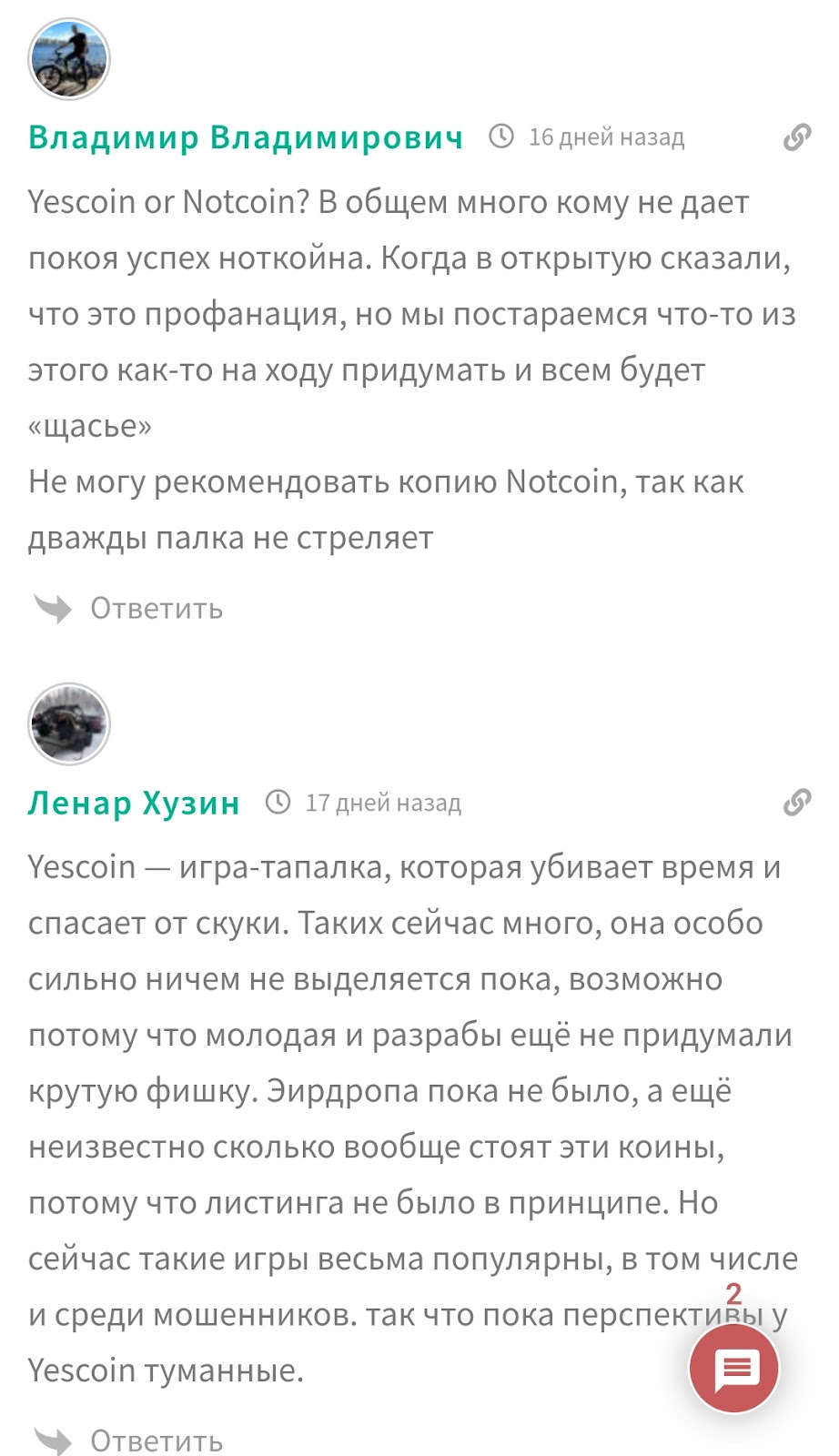 Отзывы на проект Yescoin разнятся, кому то игра нравится, а кто то в нее не верит. В любом случае, должно пройти время, чтобы можно было по ним создать мнение.