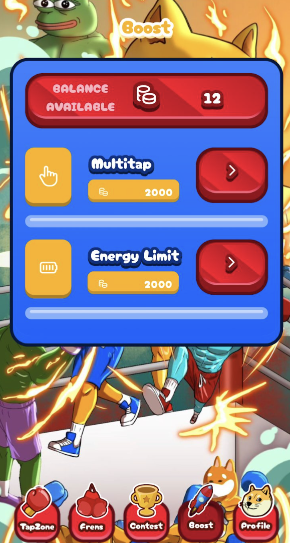 Чтобы расширить объем доступной энергии, нужно зайти в раздел Boost. Там следует найти пункт Energy Limit и нажать на находящуюся справа от него кнопку. А чтобы приобретение прошло успешно, на балансе должна присутствовать необходимая сумма, например, 2000 монет.