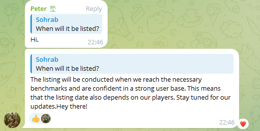 Разработчики планируют объявить о листинг в социальных сетях, включая канал в Телеграме Boom Crypto News. Пока никакой информации о сроках листинга нет.