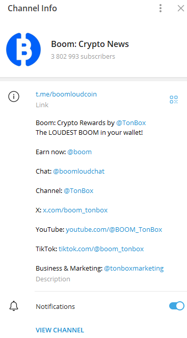 Официальный канал в Телеграме Boom: Crypto News, где более 3,8 миллионов подписчиков. Там публикуются свежие новости о проекте.