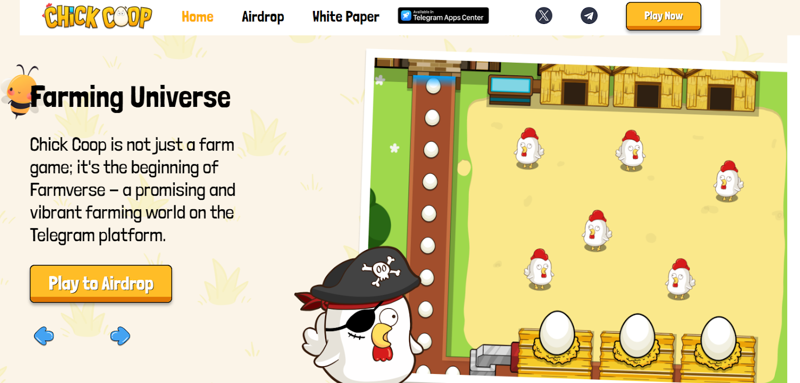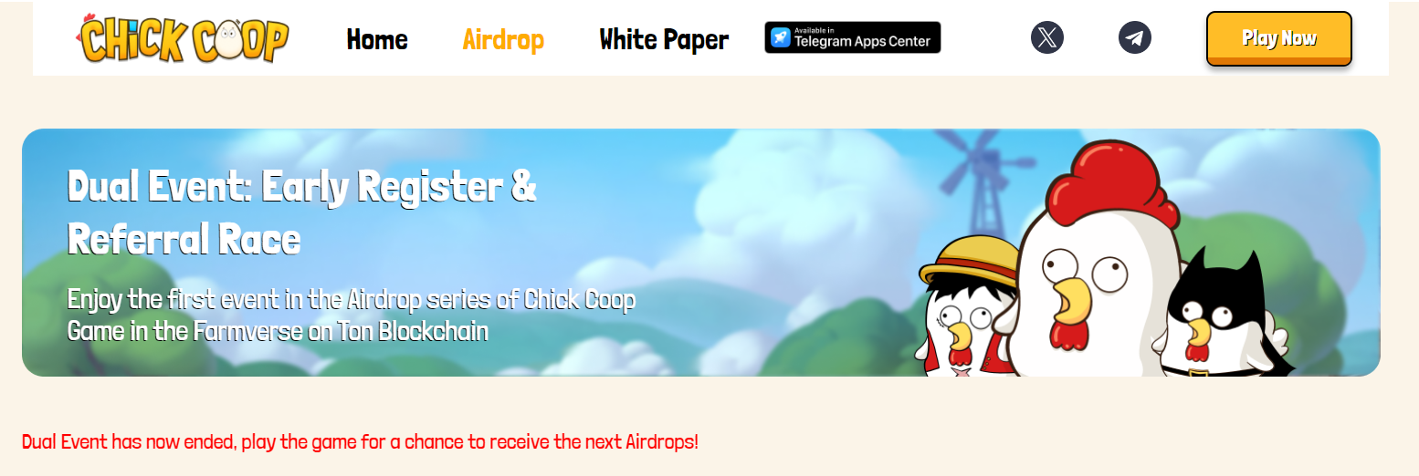 Проект Chick Coop представляет собой симулятор фермы, где пользователь зарабатывает поинты, продавая яйца, вылупляя кур и развивая ценность своих владений. Игра работает на блокчейне TON, все покупки можно совершать в этом токене, а также в Notcoin. Собственный токен также планируется отчеканить на TON. Поддержку проекту оказали Павел Дуров и Саша Нот, что уже выделяет приложение из массы тапалок. Токеномики проекта нет, дата листинга названа приблизительная — третий квартал. Сколько удастся заработать в chickcoopofficial bot, пока не ясно. В Телеграмм канале Chick Coop Announcement никаких подробностей не опубликовано. Команда проекта анонимна.