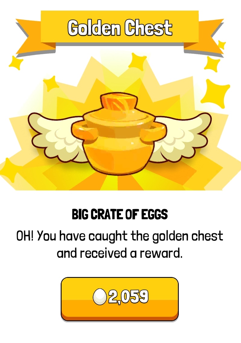 Выглядит этот бонус в Chick Coop бот в качестве летающего горшочка. Нужно поймать его, кликнув один раз, и забрать 1-2 тысяч подарочных яиц. Продать их можно за несколько тысяч купюр, а дают такой бонус довольно часто.