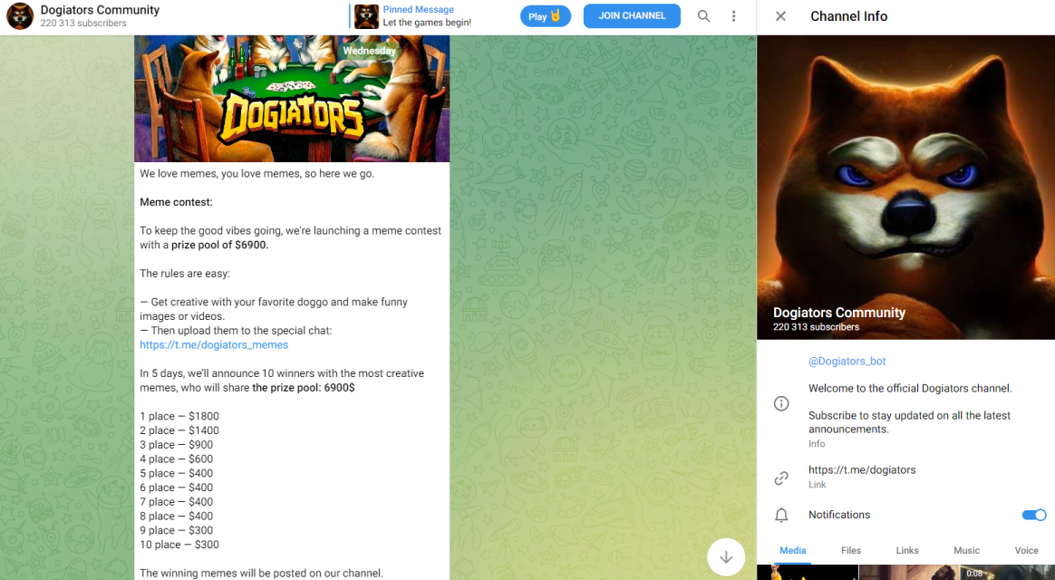 Ознакомиться с новостями игры можно с помощью Телеграмм канала Dogiators Community. На него подписано более 1 млн пользователей.