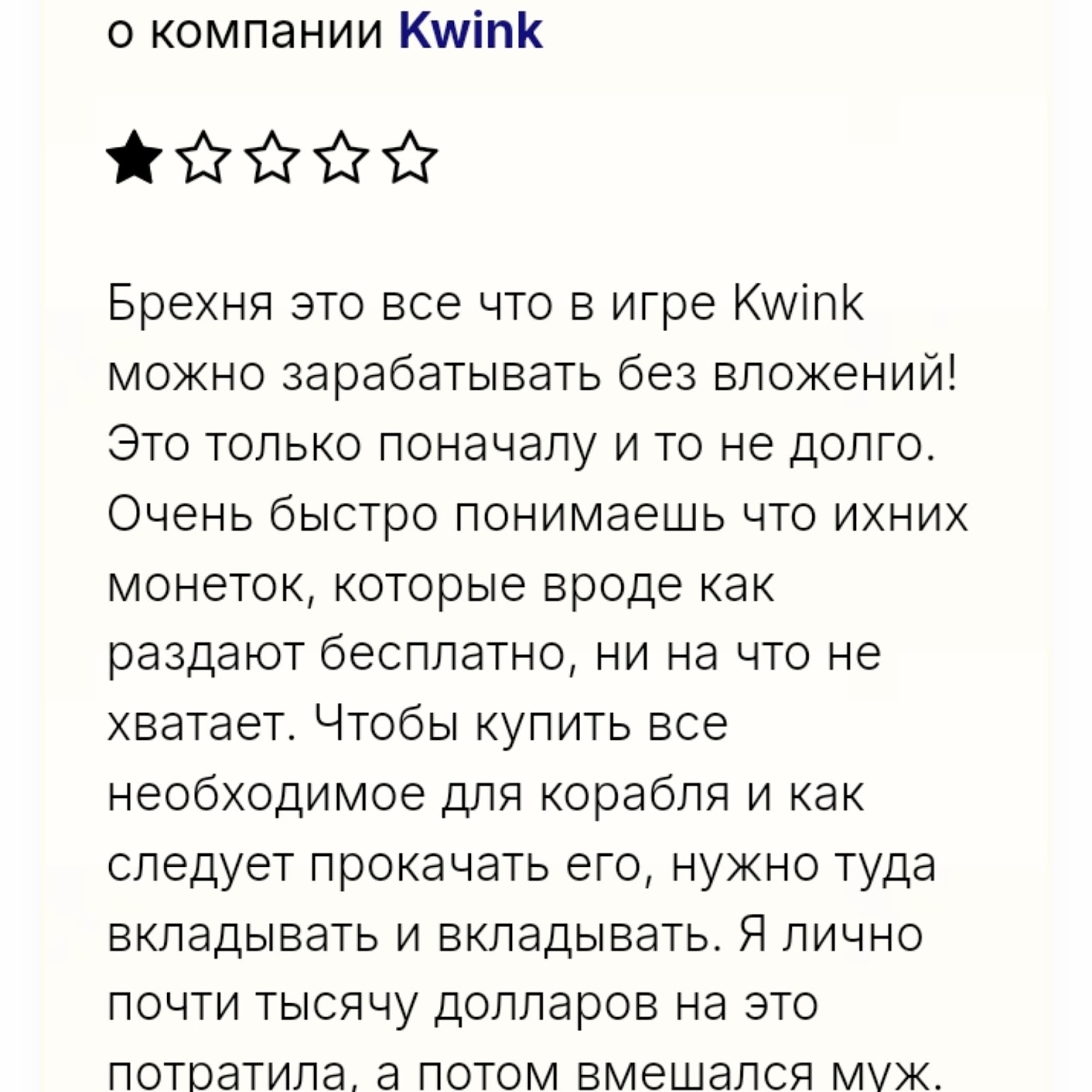 На сторонних платформах есть негативные отзывы о Kwink. Пользователи пишут, что для заработка обязательно нужно вкладывать деньги в игру.
