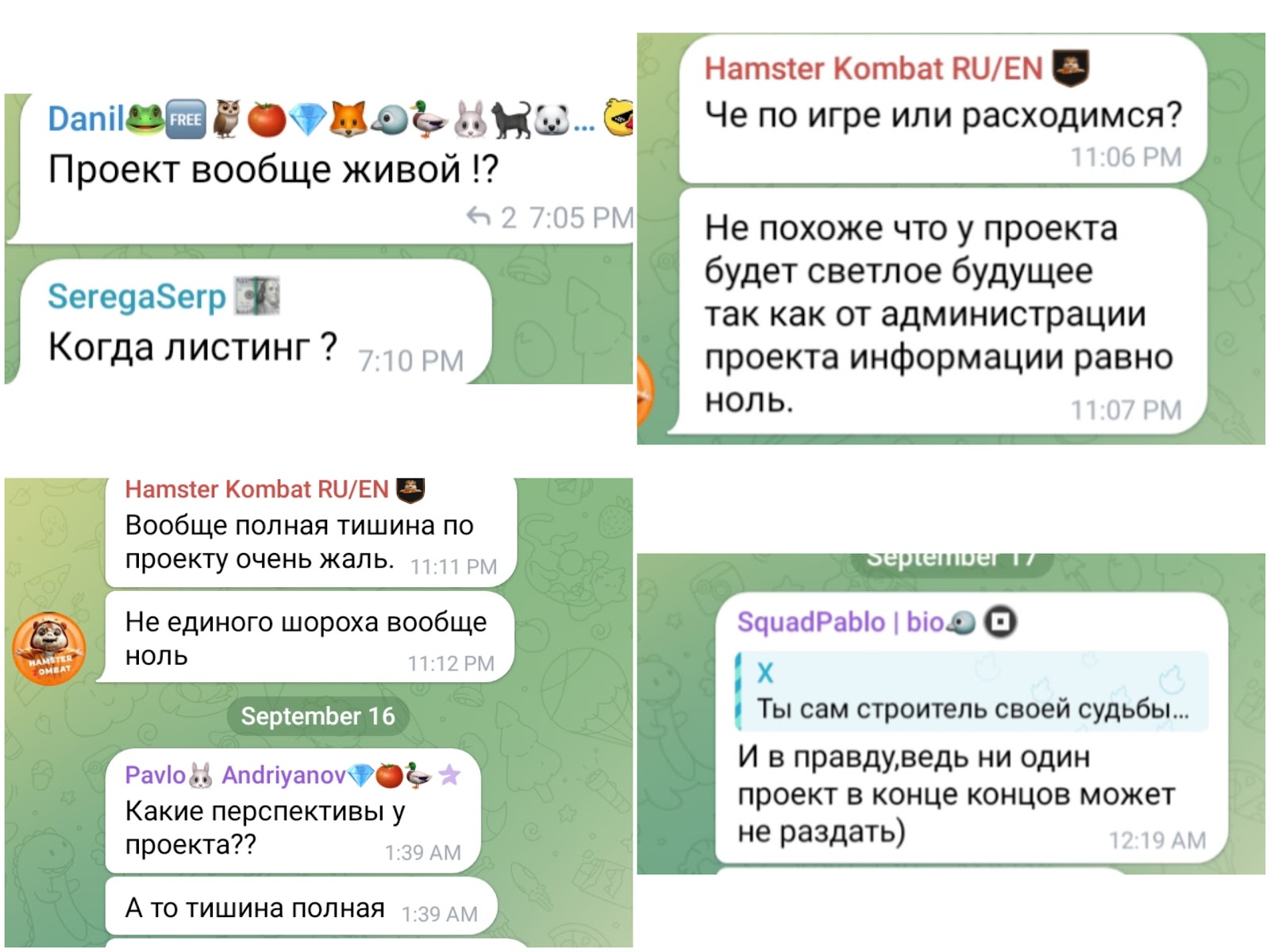 В Телеграмм чате встречаются комментарии с вопросами о листинге. Также подписчики сообщают о том, что администрация не отвечает на вопросы игроков.