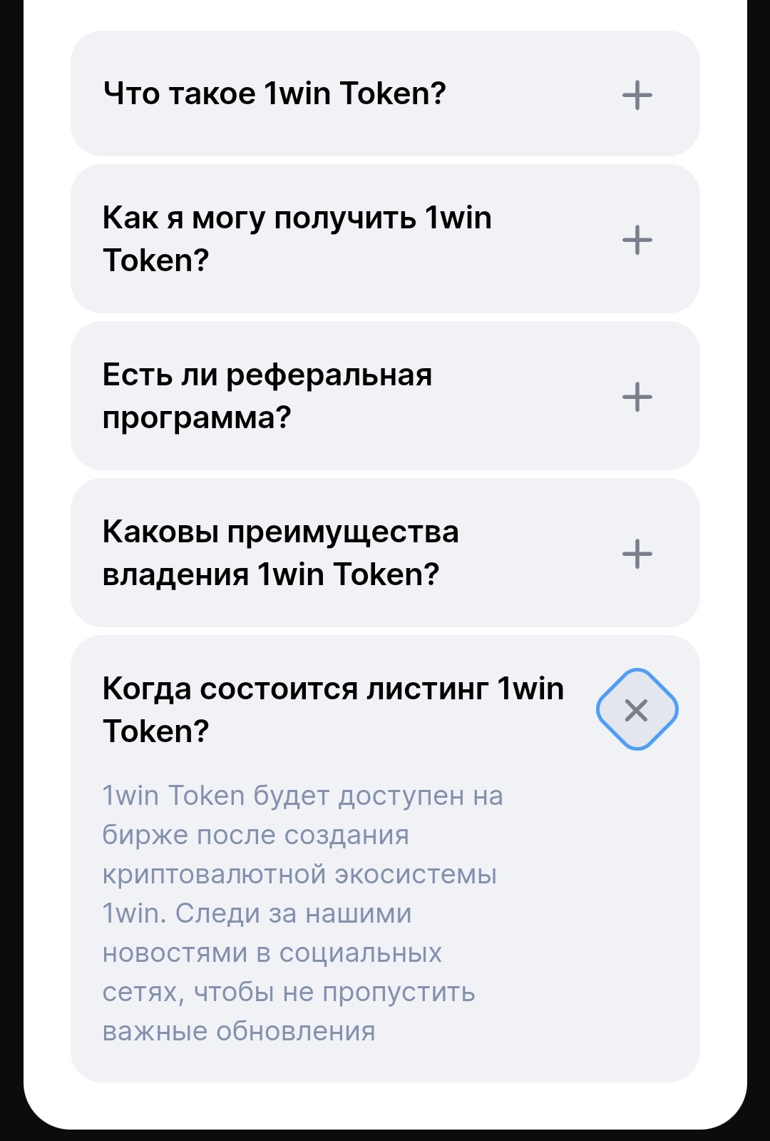 Когда будет листинг 1win token