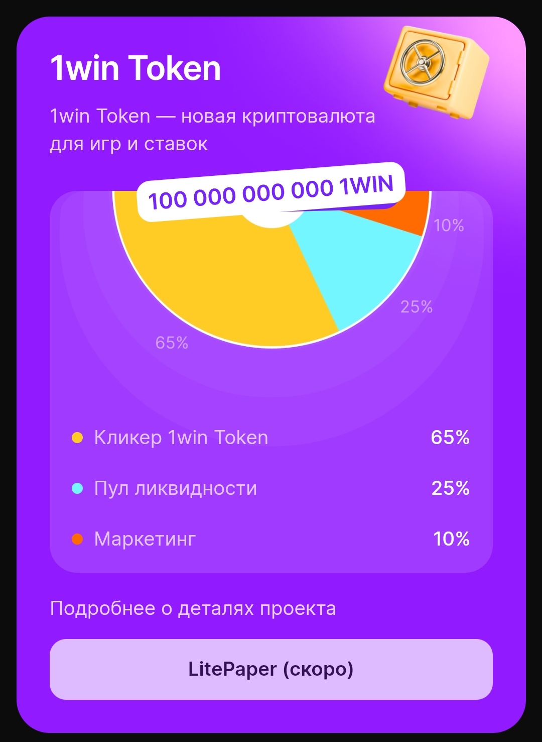 • сколько будет стоить 1win token, не ясно, до сих пор не выложена токеномика;