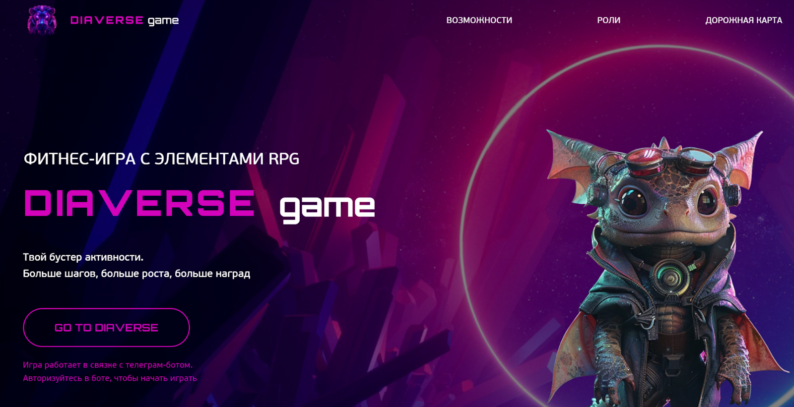 В отзывах о заработке на Diaverse и на официальном сайте приводится краткая информация об игре и ее возможностях. Разработчики заявляют, что клиентам доступна фитнес-игра с RPG-элементами. Она работает в связке с ботом Телеграм по ссылке Diasporapartnerbot, который необходимо запускать для получения всего функционала.