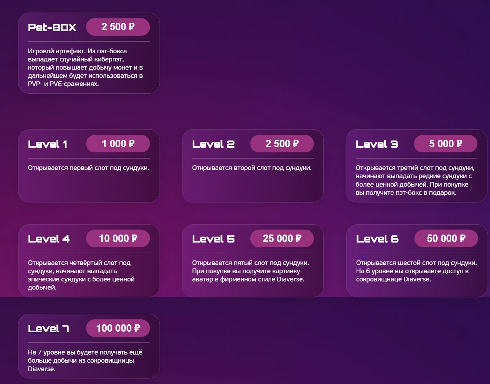 - 3-й (5000 р) — третий слот, появление новых сундуков, pet-бокс;