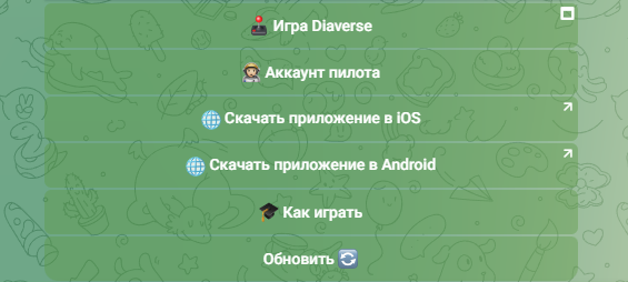 Также есть DiasporaPartnerBot, где можно получить доступ к приложениям для загрузки, аккаунту пилота, самой игре, инструкции и обновлению.