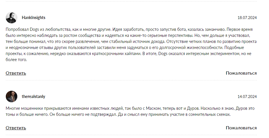 Отзывы о проекте dogshouse bot имеют скорее негативный оттенок, а именно: