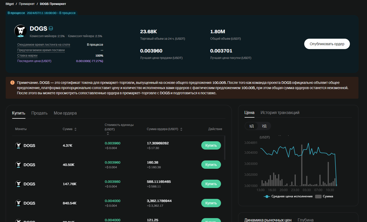 Когда будет листинг $DOGS