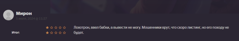 Некоторые же вовсе называют данный проект лохотроном. Так, некий Мирон утверждает, что завел деньги в систему, а вывести их возможности, как впоследствии оказалось, нет.