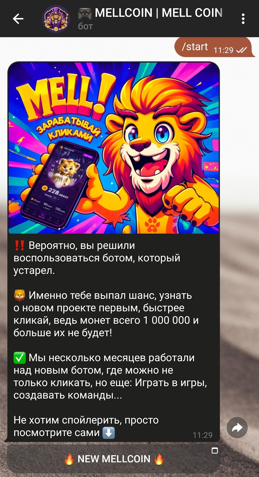 Mellcoin — telegram игра, откровенный скам, который уже запустил несколько ботов, собрал с аудитории большие суммы и перестал обновлять контент в середине июля 2024 года. Разработчики — анонимная команда. Название — отсылка к блогеру Меллстрою, хотя официальных заявлений от него о создании проекта не поступало. Скорее всего, организаторы просто хайпанули на его имени. В статье поговорим о том, какую схему скама Mellcoin применял к своей аудитории, узнаем, как вывести деньги с Меллкоина, а также расскажем, как не стать жертвой подобных аферистов.