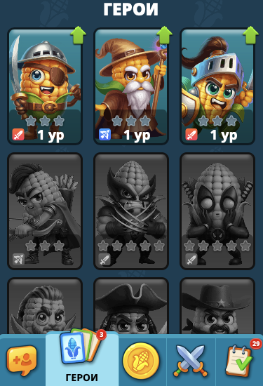 Corn Battles – что за игра? Это фармилка, которая совмещена с браузерной РПГ. По мере прохождения игроку требуется прокачивать персонажей и отправлять их в бой.