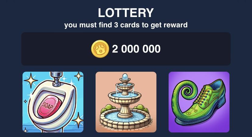 Ни для кого не секрет, что система «Ежедневное комбо», считается самой прибыльной функцией во многих криптовалютных играх, и порой имеет одинаковую концепцию выполнения на многих площадках. Для выполнения дейлика, вам необходимо перейти в раздел «Лотерея», во вкладке «Город», выбрать 3 верные картинки и расставить их в правильном порядке. Ниже будет прикреплена актуальная на сегодня комбинация, благодаря которой, вы без труда заберёте ваши награды.