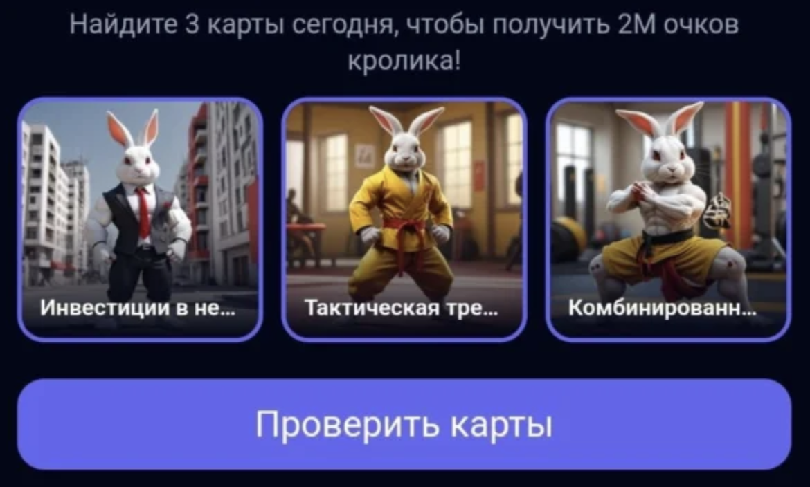 В криптовалютном кликере Rocky Rabbit добавили новые карточки для сбора комбинации. Делимся с вами картами для получения приза за 2 сентября.