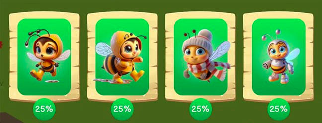 «Комбо дня» — это ежедневная миссия, где игроки получают высокие награды за успешное прохождение задания. Система заработка набрала популярность благодаря наградам, которые подстраиваются под ваш текущий доход. Здесь вам предстоит подобрать верную комбинацию из 4 видов пчёл, что принесёт приз, равноценный нескольким часам постоянного фарма мёда. Чтобы без труда забрать максимальную награду, рекомендуем обратиться к приложенному ниже скриншоту с актуальным набором карт: