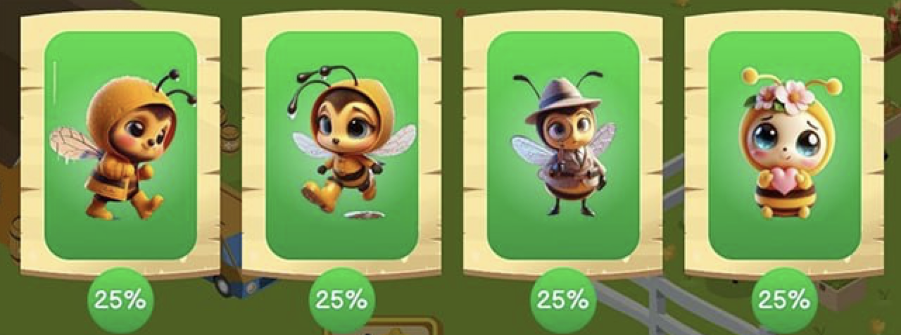 Кто-то мечтает о домашнем животном в виде рыбки, кота или собаки, для любителей экзотики идеальными питомцами становятся змеи и пауки, а для тех, кто не хочет лишних проблем и затрат, Bee Harvest придумала решение. В вашем распоряжении виртуальная пасека с такими же пчёлами, целью которых является сбор мёда (а для игрока в будущем — криптовалюты). Единственная забота — каждый день заходить в приложение, быть начеку по скорости сбора нектара и не забывать выполнять ежедневное комбо. На 8 ноября выигрышные карты выглядят следующим образом: