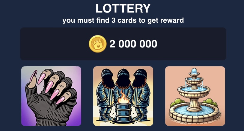 • Выберите мини-игру “Лотерея”
