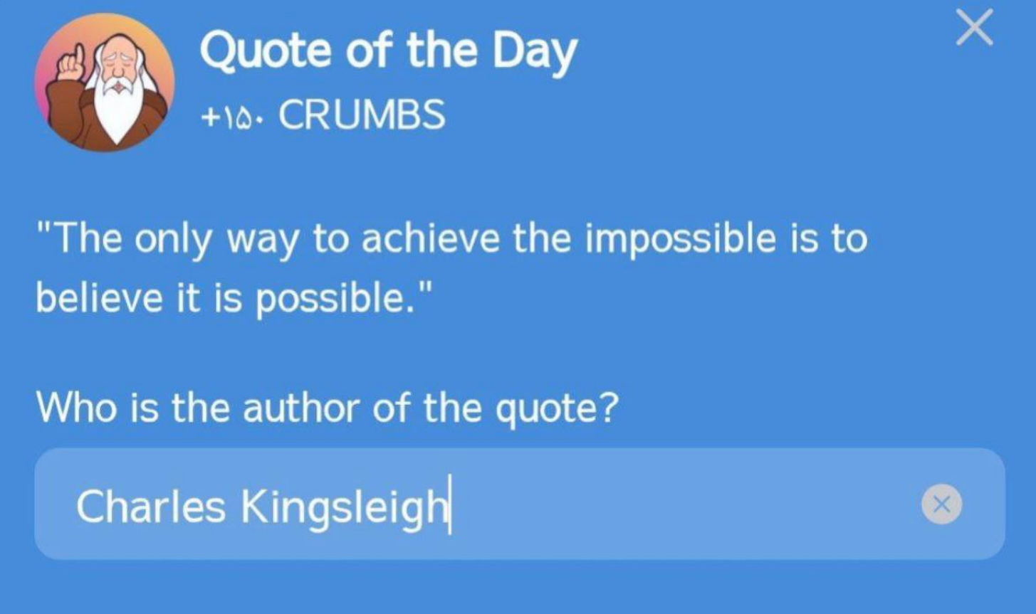 Теперь вы не только узнали что-то новое, но и получили реальный шанс забрать вознаграждение за правильный ответ. Вам нужно проследовать в свой аккаунт и ввести указанную нами фамилию. Не забудьте завтра снова вернуться на наш ресурс, чтобы узнать автора очередной цитаты, которая принесет вам очередную порцию монет в любимом кликере.