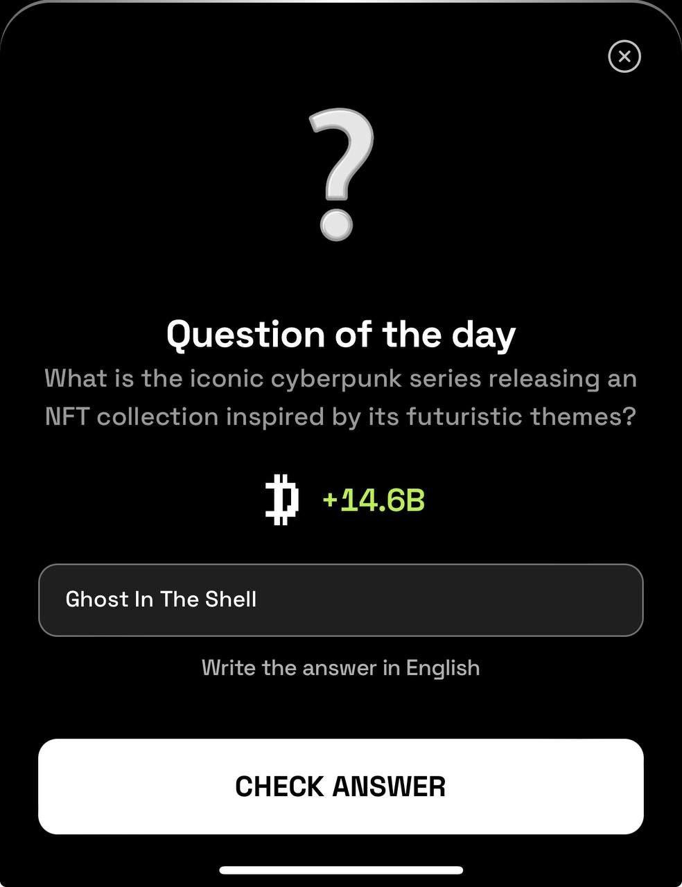 Свежий квест с денежным бонусом! Ответь на вопрос дня с помощью нашей подсказки. Кодовое слово следует вводить латинскими буквами: